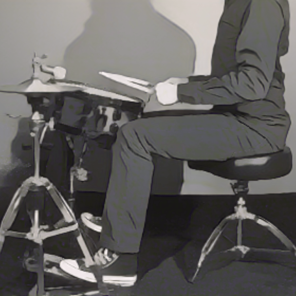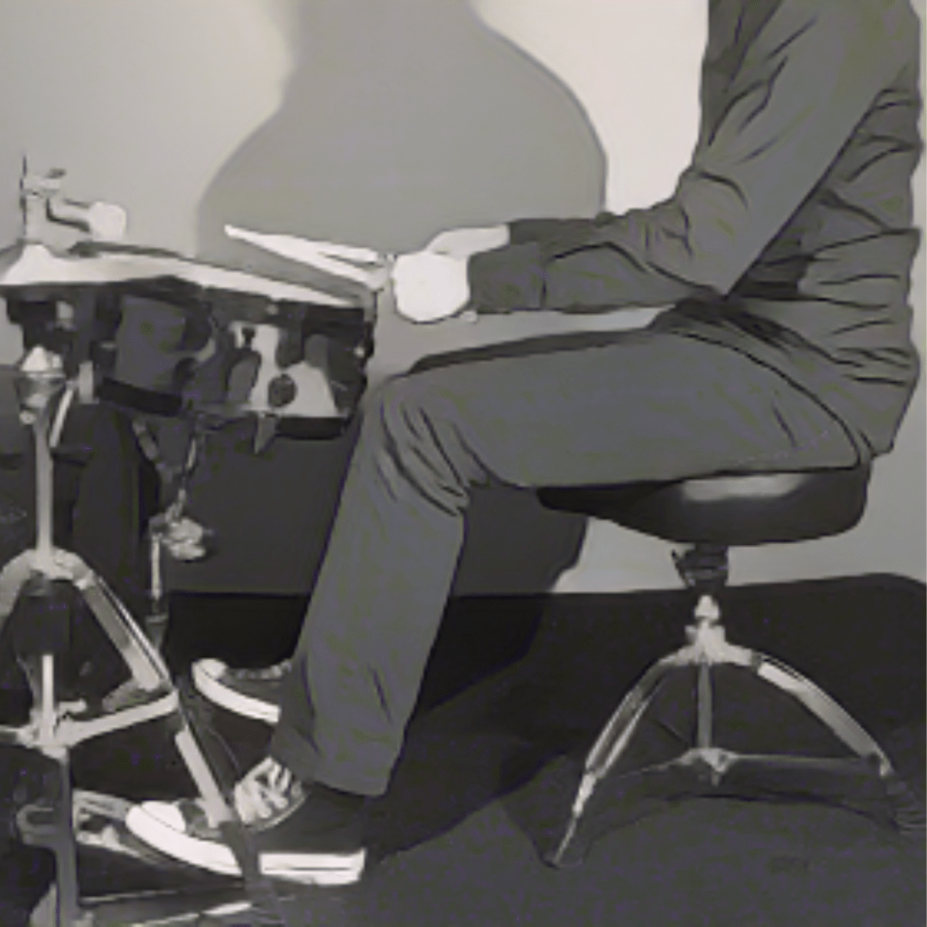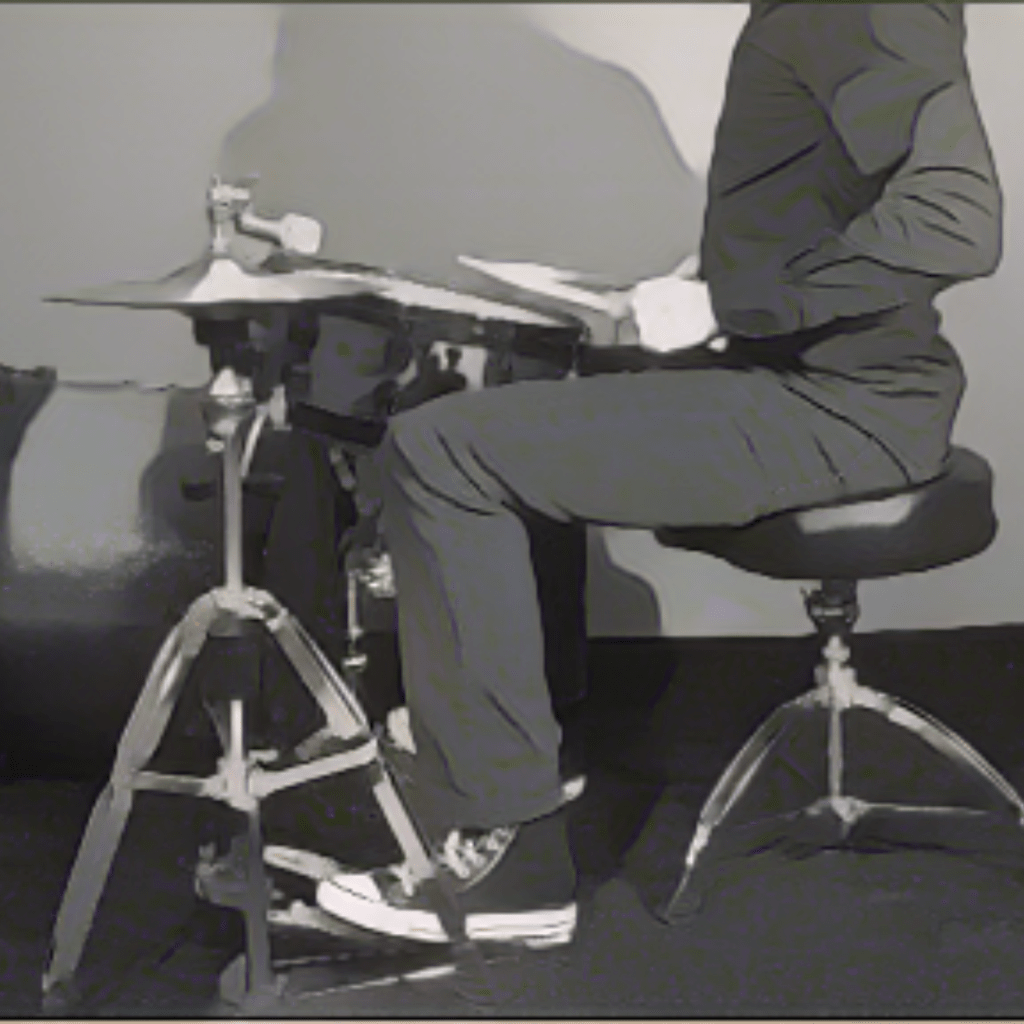 Una posizione naturale e comoda sullo sgabello è la chiave. È importante evitare di sedersi completamente indietro, con il corpo appoggiato sulla parte posteriore della sedia, poiché questa postura tende a favorire l’incurvamento e crea una pressione scomoda sulla parte anteriore delle cosce, ostacolando il movimento fluido delle gambe. Sedersi troppo avanti, invece, potrebbe costringere il batterista ad inclinarsi in avanti, il che richiede uno sforzo aggiuntivo per bilanciare il peso corporeo. Questi piccoli aggiustamenti possono sembrare insignificanti, ma hanno un impatto notevole sul controllo e la precisione dei movimenti dei pedali. In particolare, quando si suona con due pedali, è essenziale mantenere un equilibrio uniforme per evitare movimenti scoordinati o disallineamenti.